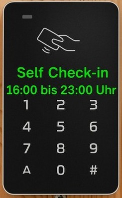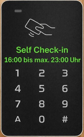 - Am Anreisetag erhalten Sie ab 15:30 Uhr alle Informationen für den Self-Check-in bis max. 23:00 Uhr per Mail.